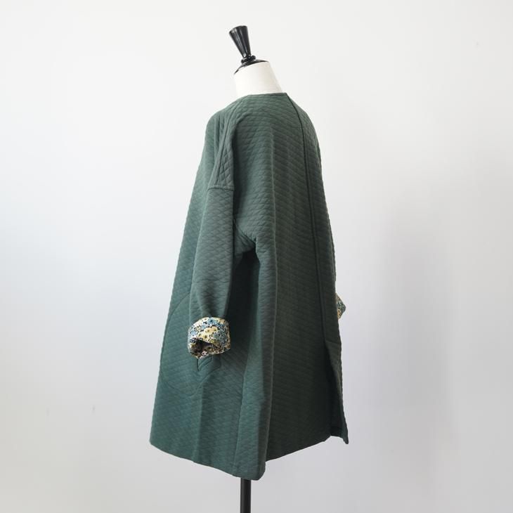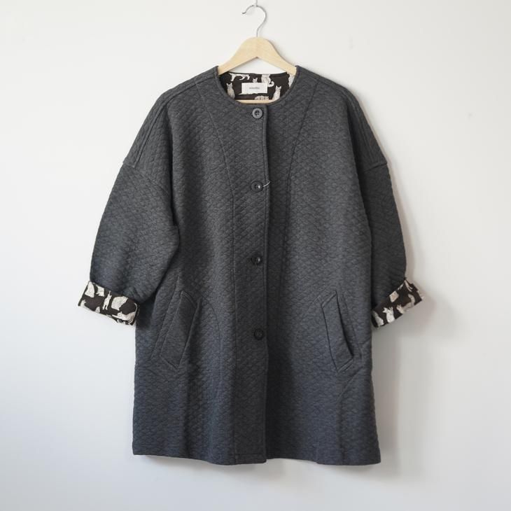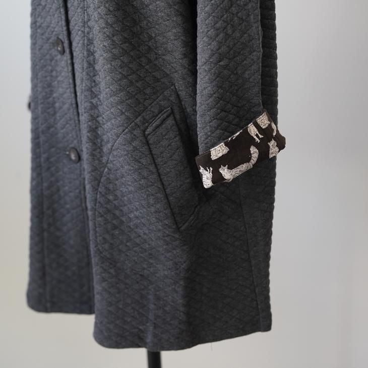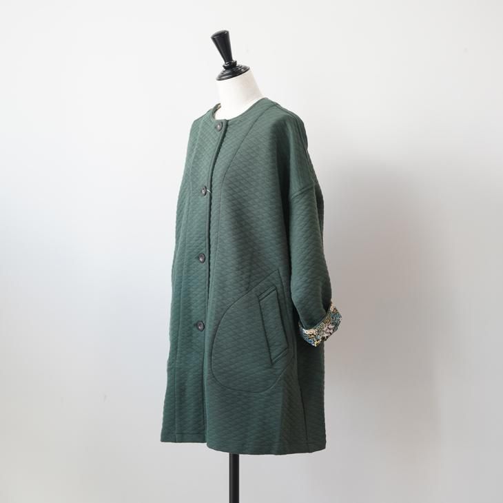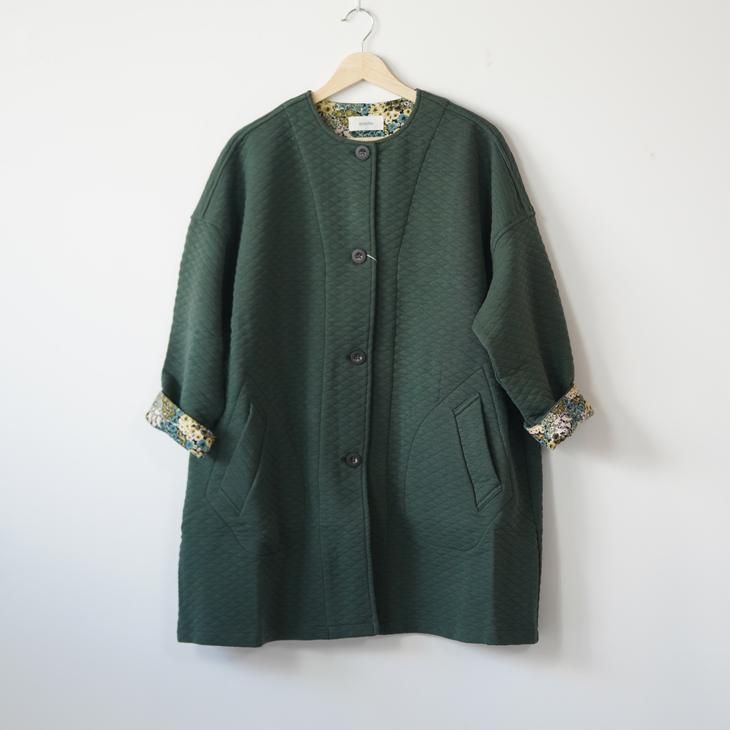 sosotto (ソソット) | LIBERTY コットンキルトノーカラーコート (charcoal x meow/green x rosselie) | ジャケット リバティ