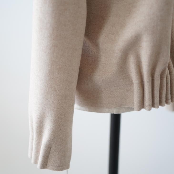 ドロップショルダーで、落ち感があり、袖とバック裾のプリーツデザインが上品さをプラスしてくれます。