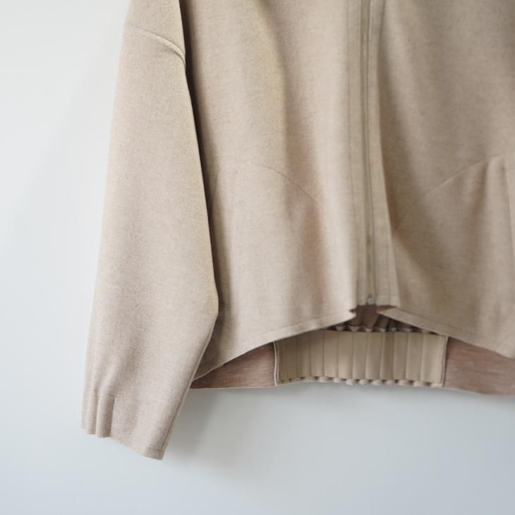 袖とバック裾のプリーツデザインがアクセントのフードジャケット。