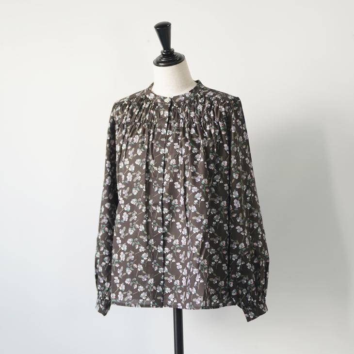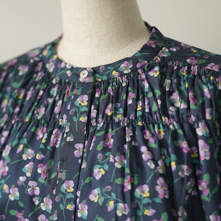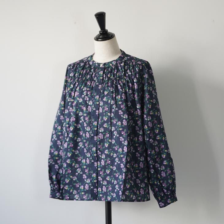 LIBERTYの優美な花柄Pansy Scatterを使用した上品なブラウス。