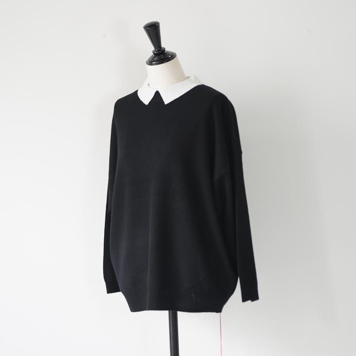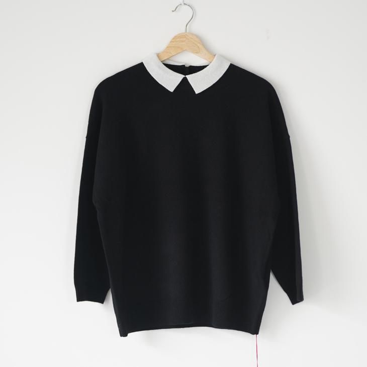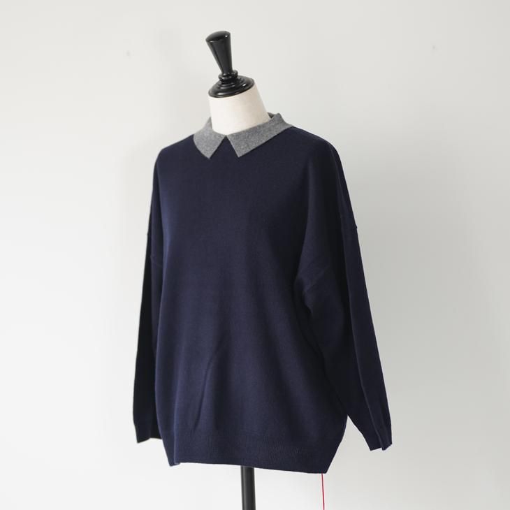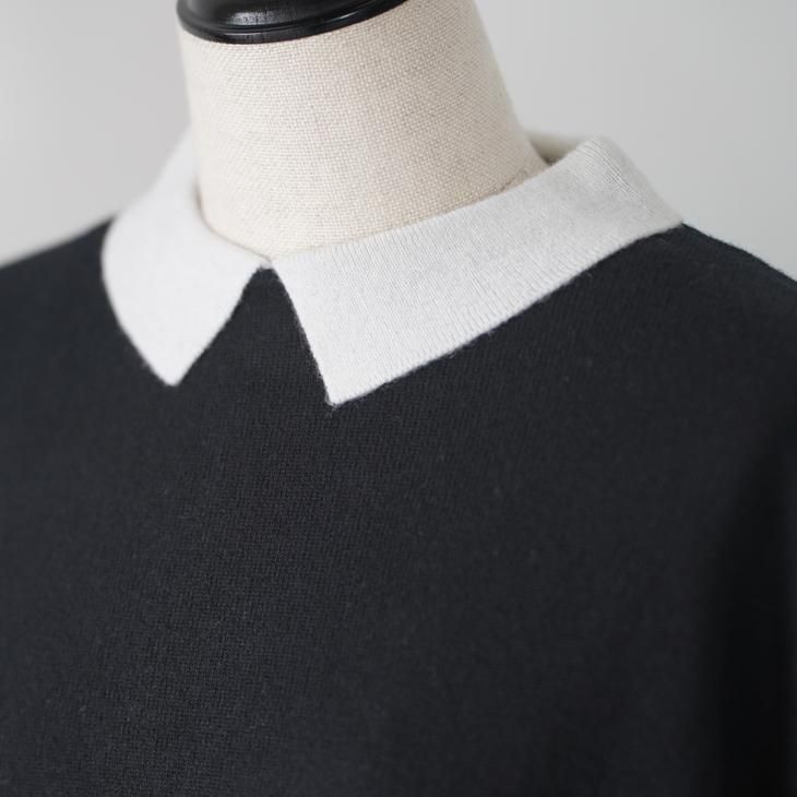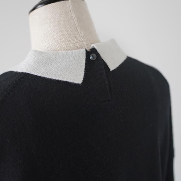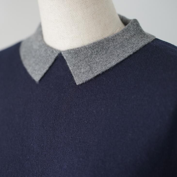 STAMP AND DIARY | メリノカシミヤ 襟付プルオーバー (コンxグレー/クロxシロ) | スタンプアンドダイアリー