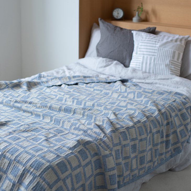 リネンのシャリ感、シュニールコットンのやさしい肌ざわり、日本の夏にこれ以上ない素材の組み合わせを実現したのがKLIPPAN リネン&シュニールコットンブランケット。