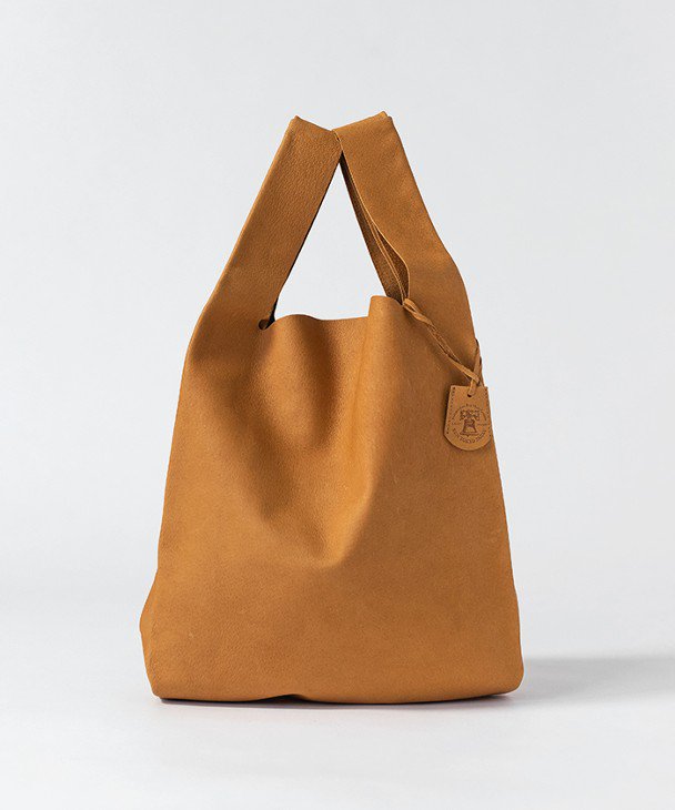 ショッピングバッグとしてちょっとしたお出掛けにA4サイズがすっぽり収納できる、レジブクロがキャメル、ブラック入荷しています。