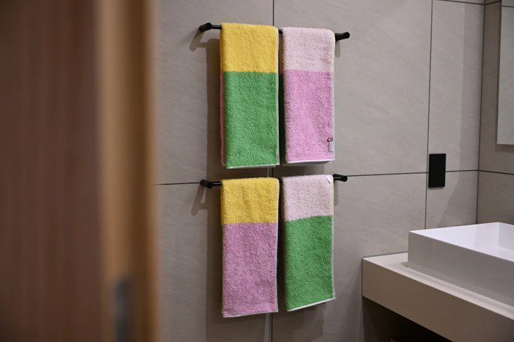 石本藤雄がデザインした、色と肌触りを楽しむタオル「いろは」。
