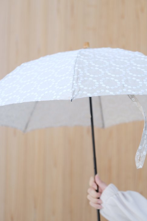 SUR MER (シュルメール) | 麻刺繍 輪っか水玉 折りたたみ日傘 (natural)
