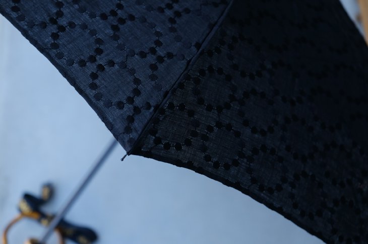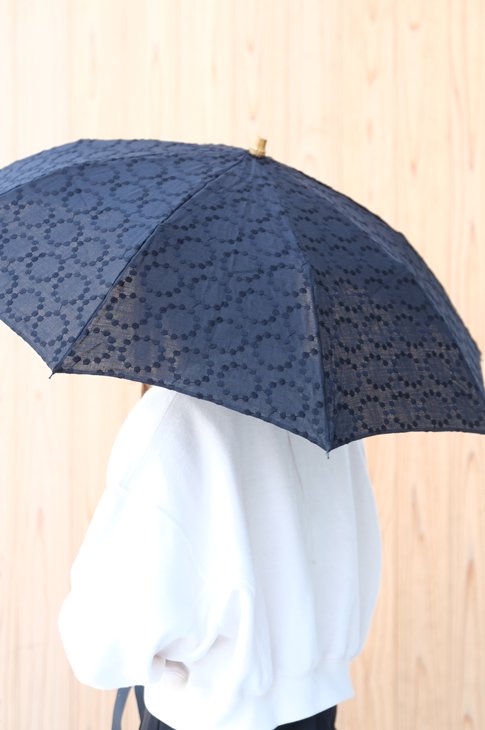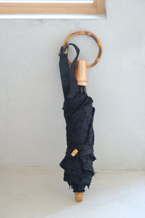 SUR MER (シュルメール) | 麻刺繍 輪っか水玉 折りたたみ日傘 (black)