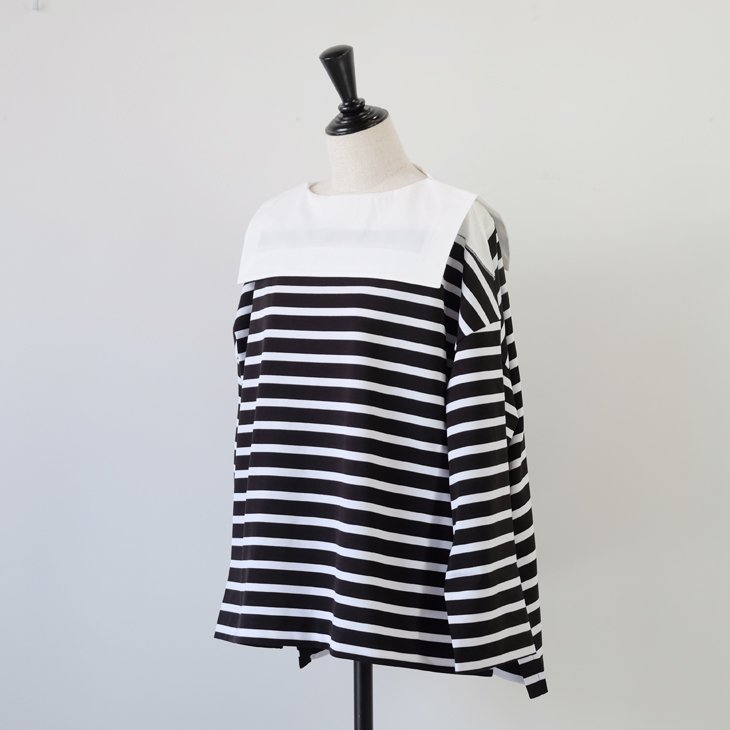Porter des boutons (ポルテ デ ブトン) | スクエアカラーバスクシャツ (ブラックxオフラインボーダー)