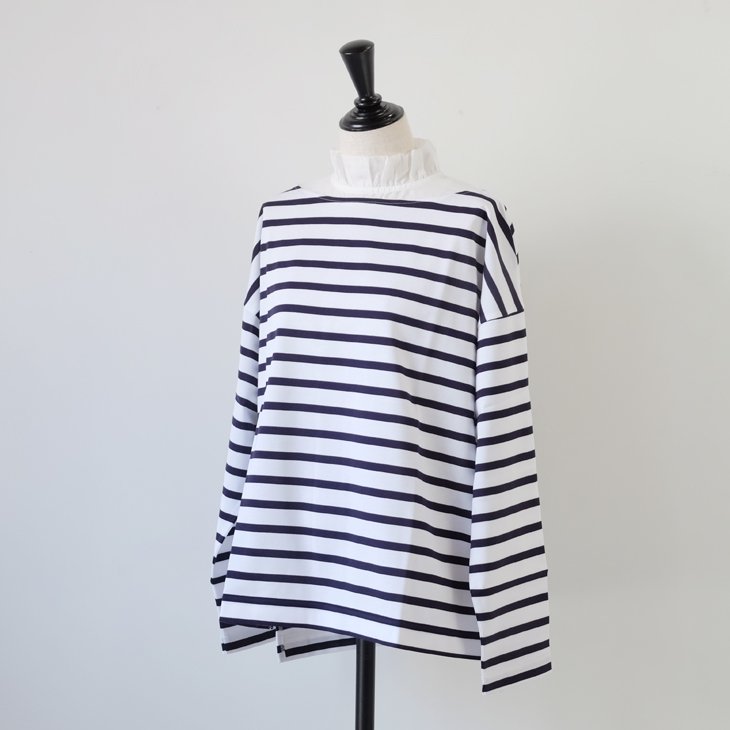 Porter des boutons (ポルテ デ ブトン) | フリルカラーバスクシャツ (オフxネイビーラインボーダー)